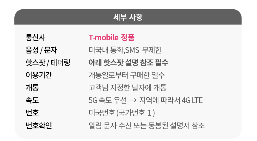 미국유심 티모바일 Daily 무제한 데이터 통화