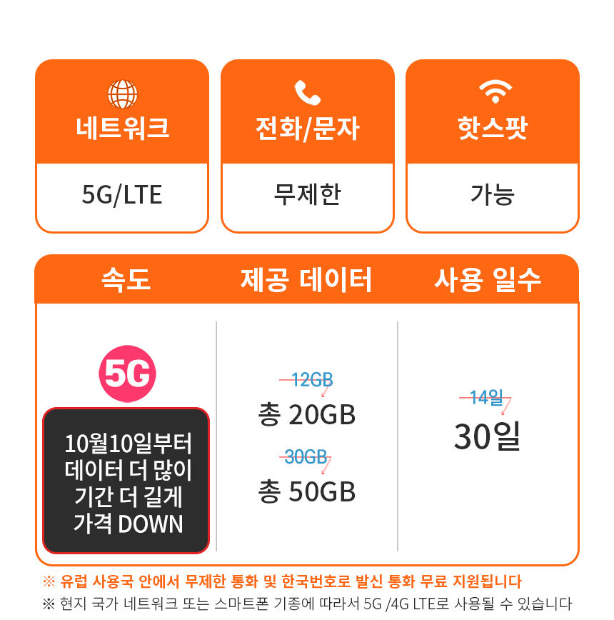 데이터+핫스팟+한국통화 지원