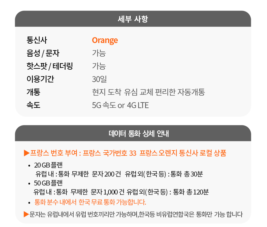 유럽유심 칩 프랑스 오렌지 유심 전유럽 사용